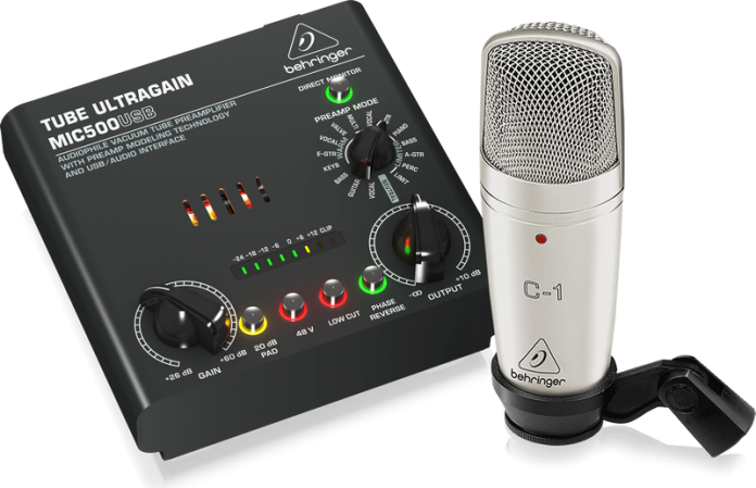 Na zestaw składają się modele dobrze już znane na rynku od wielu lat, jednak teraz producent proponuje je jako kompletny zestaw. Pewnie niebawem w takiej formie trafi również do Polski. Znajdziemy w nim wyjątkowo tani ale dość popularny mikrofon pojemnościowy Behringer C-1, oraz równie ciekawy i niedrogi preamp lampowy Behringer MIC500USB będący jednocześnie interfejsem audio.