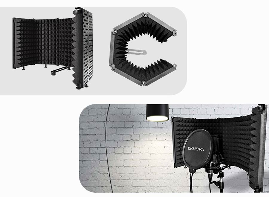 CKMOVA SRF5 to mobilna kabina akustyczna, która pomoże Wam lepiej zapanować nad nagraniem głosu i wyeliminować z niego chociażby niepożądany i zbyt duży pogłos. Dzięki możliwości montażu na klasycznym statywie mikrofonowym otrzymujemy wiele opcji ustawień, a dodatkowo składane boki kabiny pozwalają w pełni dopasować ją do swoich potrzeb.