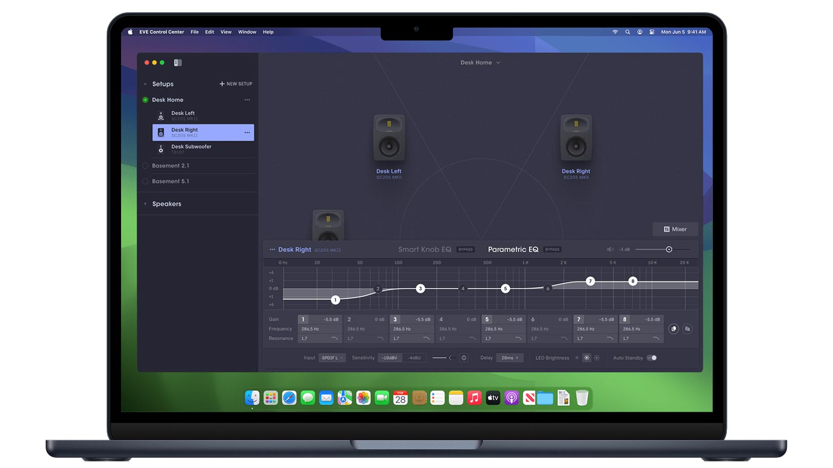 Planowane oprogramowanie EVE Control umożliwi pełną kontrolę nad każdym monitorem w czasie rzeczywistym, oferując regulację EQ, filtrów i opóźnień, co jest szczególnie przydatne w konfiguracjach immersyjnych, takich jak Dolby Atmos.