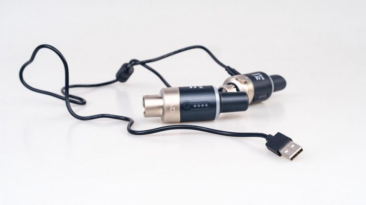 W zestawie znajdziemy zarówno transmiter jak i odbiornik zasilane wbudowaną baterią litową o pojemności 400 mAh.