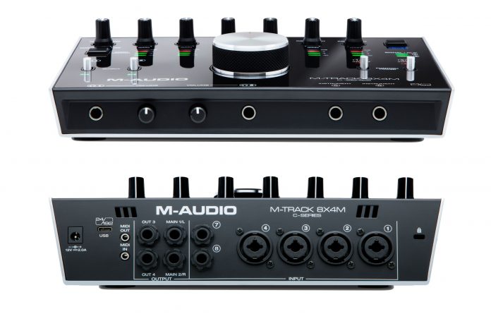 M-Track 8X4M wyposażony jest w 4 wejścia combo XLR/TRS 1/4″, 2 wejścia liniowe i 2 wejścia instrumentalne 1/4″ ze specjalnie zaprojektowanym stopniem wzmocnienia i impedancji, zapewniającym najbardziej precyzyjne przystosowanie się do sygnału gitary lub basu podłączonego bezpośrednio do interfejsu, a także wejście i wyjście MIDI. Ma również parę wyjść 1/4″ dla monitorów studyjnych i 2 dodatkowe wyjścia 1/4” z opcją konfiguracji. Dzięki dwóm wyjściom słuchawkowym 1/4″ z niezależnym wyborem źródła i regulacją sygnału dwóch muzyków może mieć w trakcie nagrywania osobne miksy w odsłuchu.