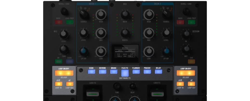 Na tym różnice się kończą, z pozostałe specyfikacje nie różnią się od tych, znanych z Rane Seventy-Two. Znajdziecie tu zatem m.in. dwa kanały, pełną kompatybilność z Serato DJ, 16 kolorowo podświetlanych padów czy dźwignie do obsługi efektów.