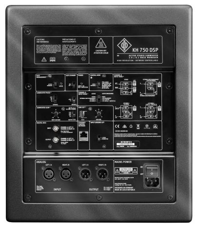 Jak zapewnia producent, KH 750 DSP oferuje unikatowe elastyczne rozwiązanie 2.0/0.1 Bass Manager, dzięki czemu subwoofer może być używany w wielu różnych konfiguracjach systemu. Na tylnym panelu znajdziemy: po dwa analogowe zbalansowane wejścia i wyjścia XLR oraz cyfrowe wejście 192 kHz / 24-bit, które może odbierać sygnały AES3 i S / P-DIF, cztery tryby trasowania sygnału i elastyczne ustawienia akustyczne, co pozwala na bezproblemową integrację systemu. Dodatkowo aplikacja Neumann.Control na iPada daje dostęp do wielu dodatkowych funkcji subwoofera.