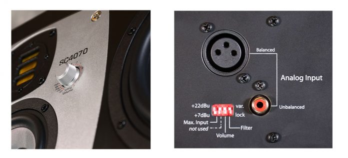 Jest to enkoder z funkcją przycisku, dzięki czemu, poza regulacją głośności, pozwala zmieniać ustawienia różnych filtrów i innych parametrów. Odsłuchy wykorzystują 24-bitowy przetwornik A/D (192 kHz). Na panelu tylnym znajdziemy analogowe wejścia XLR i cinch.