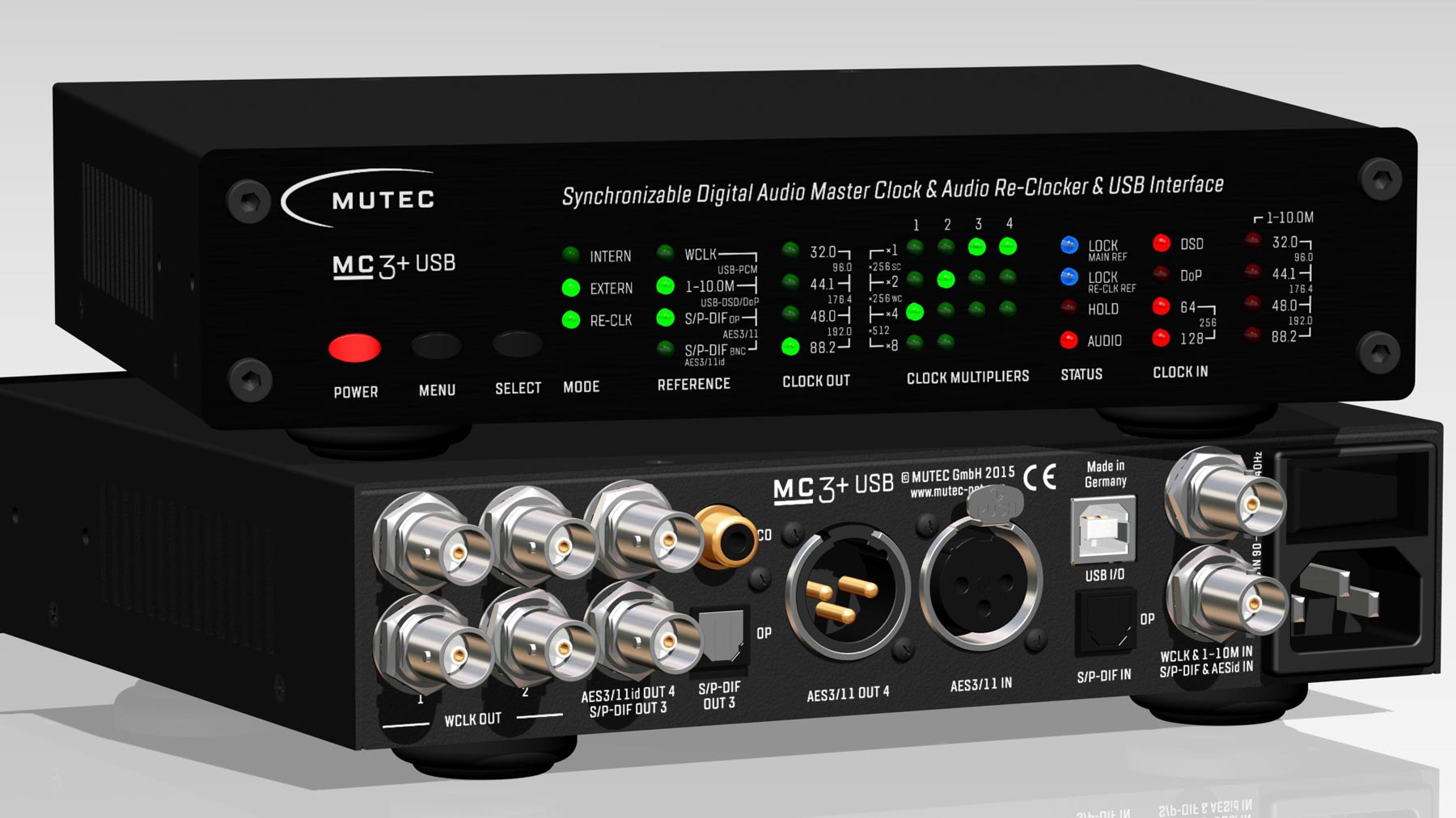 MUTEC obsługuje szeroki zakres złączy: USB (w tym DSD/DoP do DSD256), AES3, S/PDIF (BNC, RCA, optyczne), ADAT, Word Clock, a także generuje Super Clocks — wszystko w jednym urządzeniu.