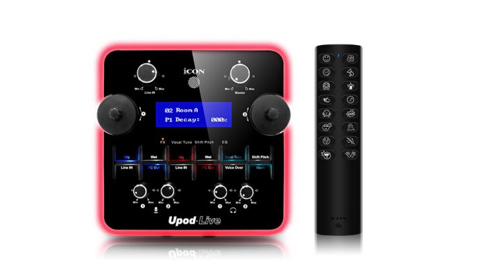 Wbudowany procesor DSP przetwarza pokładowe efekty, takie jak echo, pogłos, różnego typu modulacje, a nawet strojenie wokalu oraz inne zaawansowane funkcje, a ich obsługa odbywa się za pomocą podświetlanych przycisków, dwóch obrotowych enkoderów i wyświetlacza LCD na przednim panelu. Ale to nie wszystko – w zestawie z Icon Upod Live jest specjalny pilot na podczerwień, wyzwalający zdalnie 16 efektów dźwiękowych!