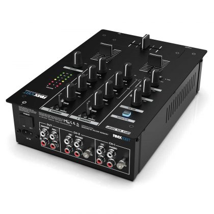 Reloop RMX-10 BT to bardzo prosty dwukanałowy mikser, na którego pokładzie znajdziecie wszystko to, co potrzebne jest do podstawowej obsługi: crossfader, dwa line fadery, dwa zestawy EQ, kontrolę Gain, kontrolę odsłuchu, wejście mikrofonowe oraz wejścia audio (liniowe i phono).