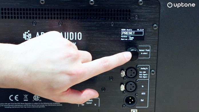 Jak wspomniałem wyżej, monitory całej serii S, w tym oczywiście testowany model S3H, wyposażony jest w procesor DSP, który pozwala nam dostosować pracę odsłuchów studyjnych do własnych preferencji oraz do konkretnych warunków akustycznych naszego pomieszczenia. Jego kontrola odbywa się za pomocą wymienionego wcześniej oprogramowania S CONTROL lub bezpośrednio z tylnej części monitora, na której znajduje się dedykowany enkoder i wyświetlacz OLED.