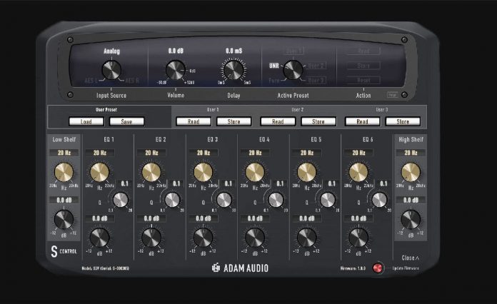 Na tylnym panelu, poza gniazdem zasilania, włącznikiem i wyjściem analogowym XLR, mamy także gniazda cyfrowe AES3 IN i OUT, które pozwalają na połączenie monitorów szeregowo, za pomocą jednego przewodu. Dodatkowo gniazdo USB, dzięki któremu możemy oczywiście aktualizować soft oraz sterować wszystkimi ustawieniami pokładowego procesora dźwięku DSP, za pomocą dedykowanego oprogramowania S CONTROL, które możemy ściągnąć za darmo ze strony producenta za darmo. Aplikacja dostępna jest zarówno na system Windows jak i MacOS.