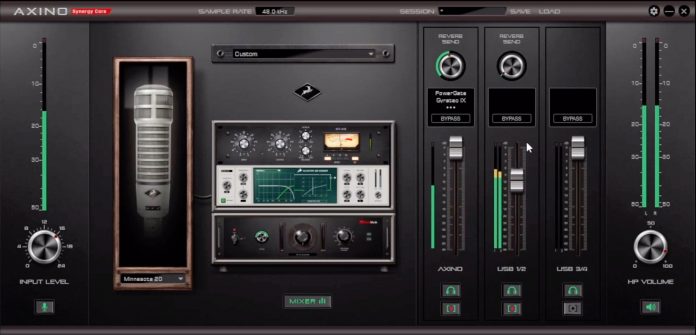 Antelope Audio może także poszczycić się sporą biblioteką emulacji różnych modeli analogowego sprzętu studyjnego z najwyższej półki. Kilka z nich dostaniemy w pakiecie z Axino: preampy Gyratec IX i BAE-1073, kompresory LA-2A i 1176, korektory BAE-1073 i API 550A, a także narzędzia takie jak bramka, expander, de-esser, tuner oraz bardzo dobry pogłos Auraverb, który wykorzystać można nie tylko do odsłuchu, ale też zarejestrować razem lub osobno od sygnału z mikrofonu w celu późniejszego wykorzystania w miksie.