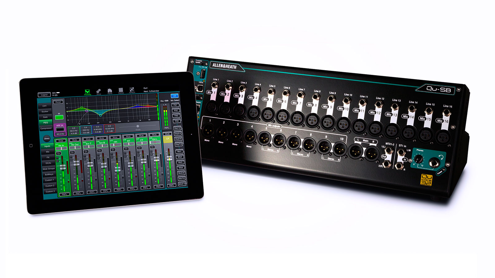 Allen & Heath Qu-SB to inteligentne, mobilne rozwiązanie dla zespołów, klubów muzycznych, studiów i szkół. Sprawdzi się też na imprezach korporacyjnych wymagających dźwięku na żywo lub nagrywania audio. Wszystko to zawarte jest w małym pudełku, które możesz obsługiwać nie tylko z poziomu samej konsoli, ale również z poziomy urządzeń mobilnych takich jak Smartphone czy tablet.