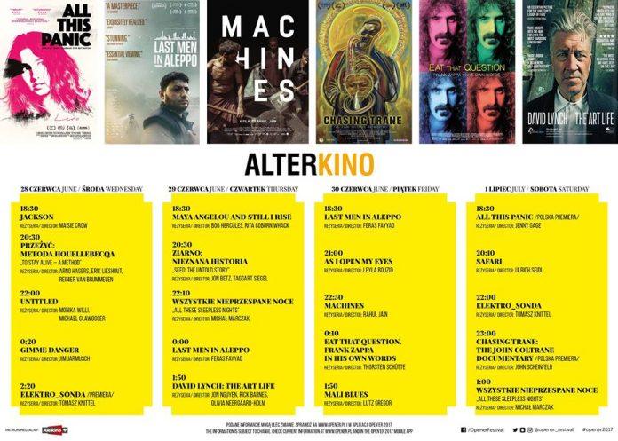 W programie są dokumenty o The Stooges (“Gimme Danger” Jima Jarmusha), Davidzie Lynchu, Franku Zappie czy Johnie Coltranie. Zobaczyć będzie można również “Wszystkie nieprzespane noce” Michała Marczka czy nagradzany na festiwalach Tribeca i Toronto “Z otwartymi oczami“.